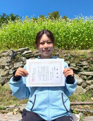 小原さんは徳島県立脇町高等学校3年生のとき、SSH(スーパーサイエンスハイスクール)活動の一環として、西あわ世界農業遺産に関する農作物栽培研究に取り組んだ経験があります。その後、学部3年生後期から研究活動を再開し、先輩や同級生の協力を得ながら研究成果を取りまとめ、今回の受賞につながりました。